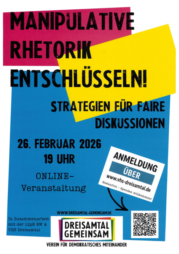 Dieser interaktive Vortrag lädt dazu ein, einen Schritt zurückzutreten und genauer hinzusehen: Wie funktionieren rhetorische Strategien und an welche Überzeugungen knüpfen diese an? Woran erkennen wir manipulative Argumentationsmuster? Und warum verfangen menschenverachtende Parolen?
