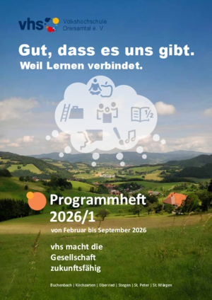 Verteilung: Vor Semesterbeginn (jeweils im Januar bzw. September) wird unser Programmheft in gedruckter Form an alle Haushalte in Buchenbach, Kirchzarten, Oberried, Stegen, St. Peter und St. Märgen innenliegend im Dreisamtäler verteilt.